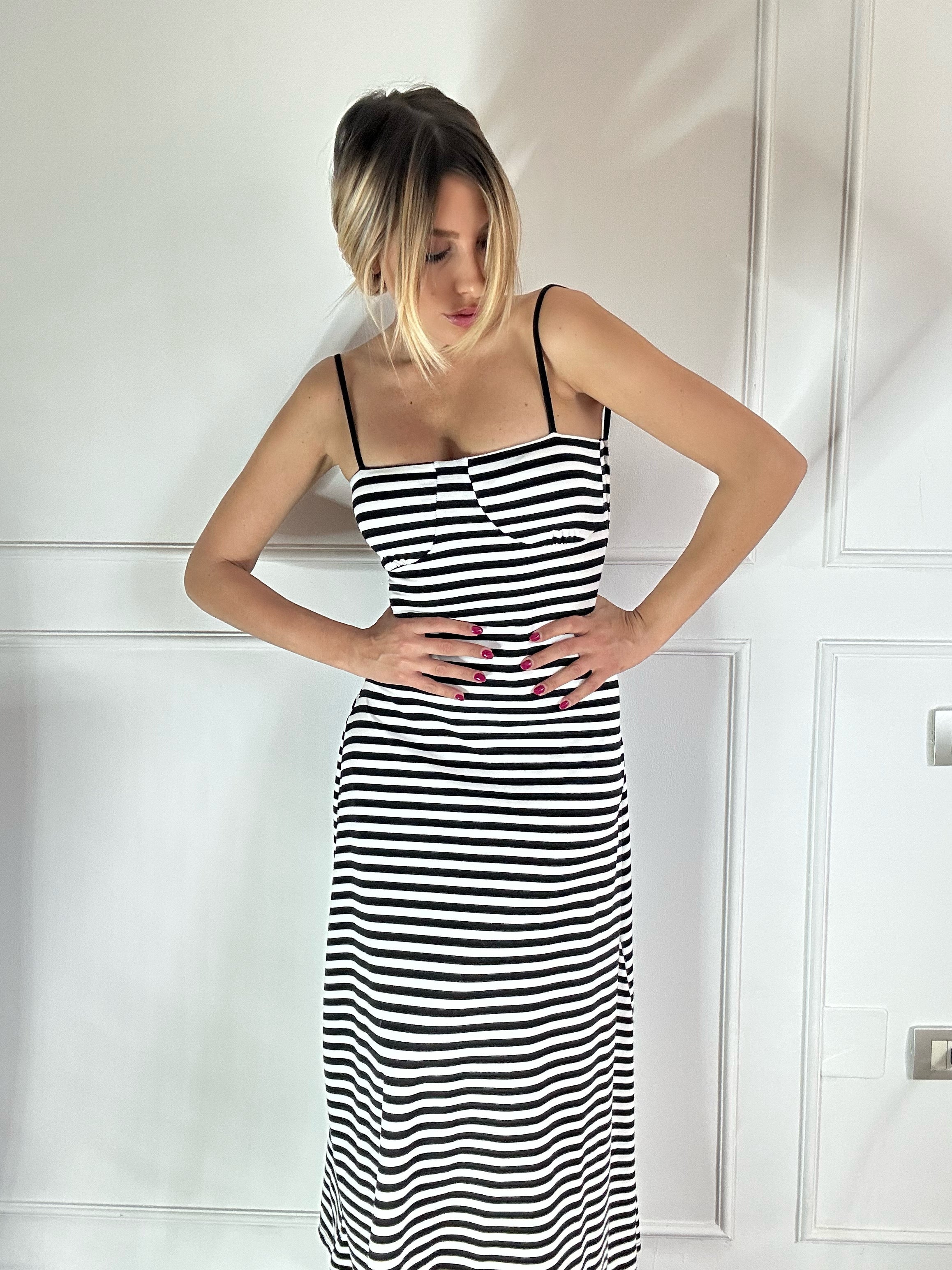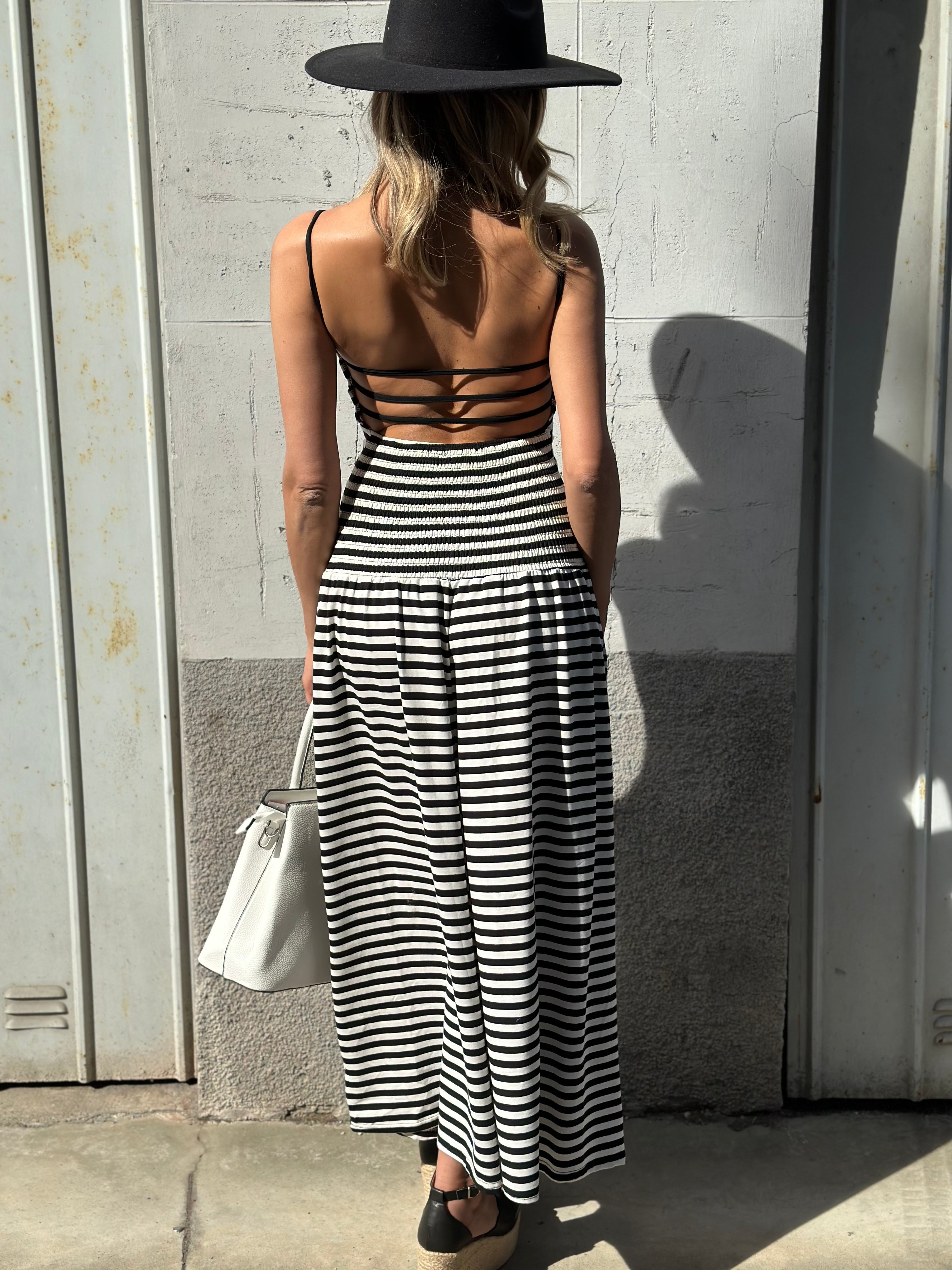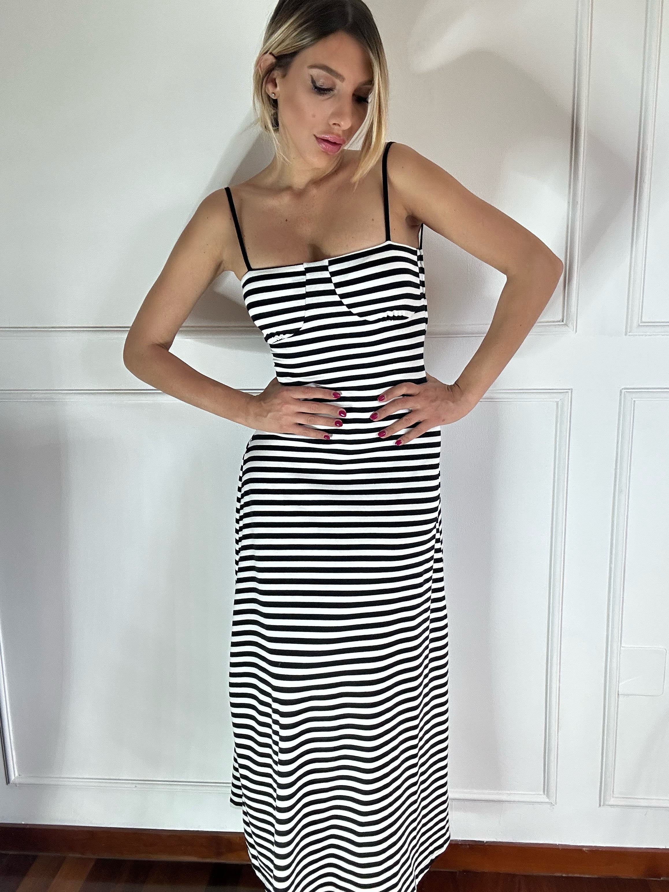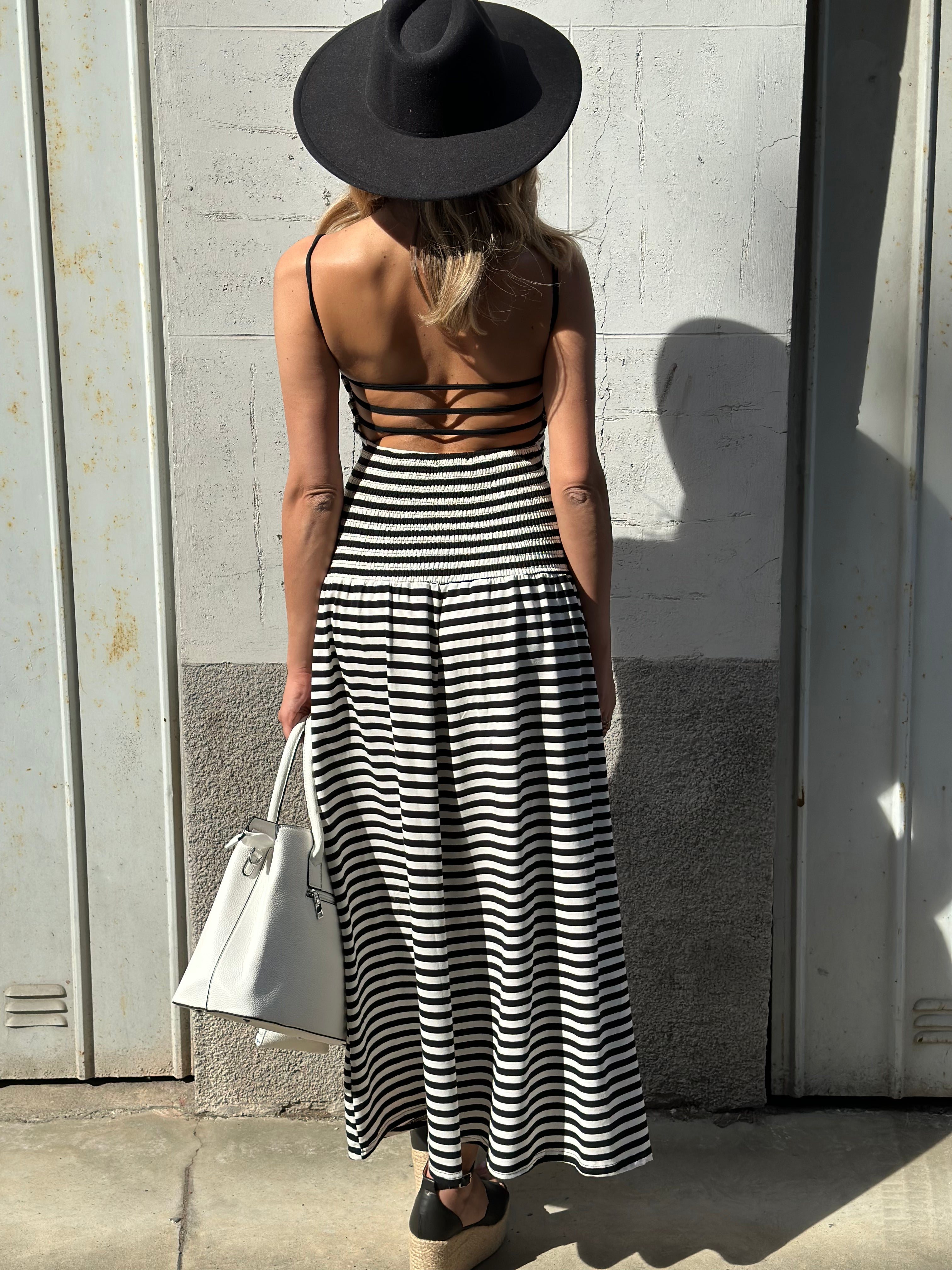 Abito sotto veste in cotone, con coppe inserite, svasato, arricciato sulla schiena