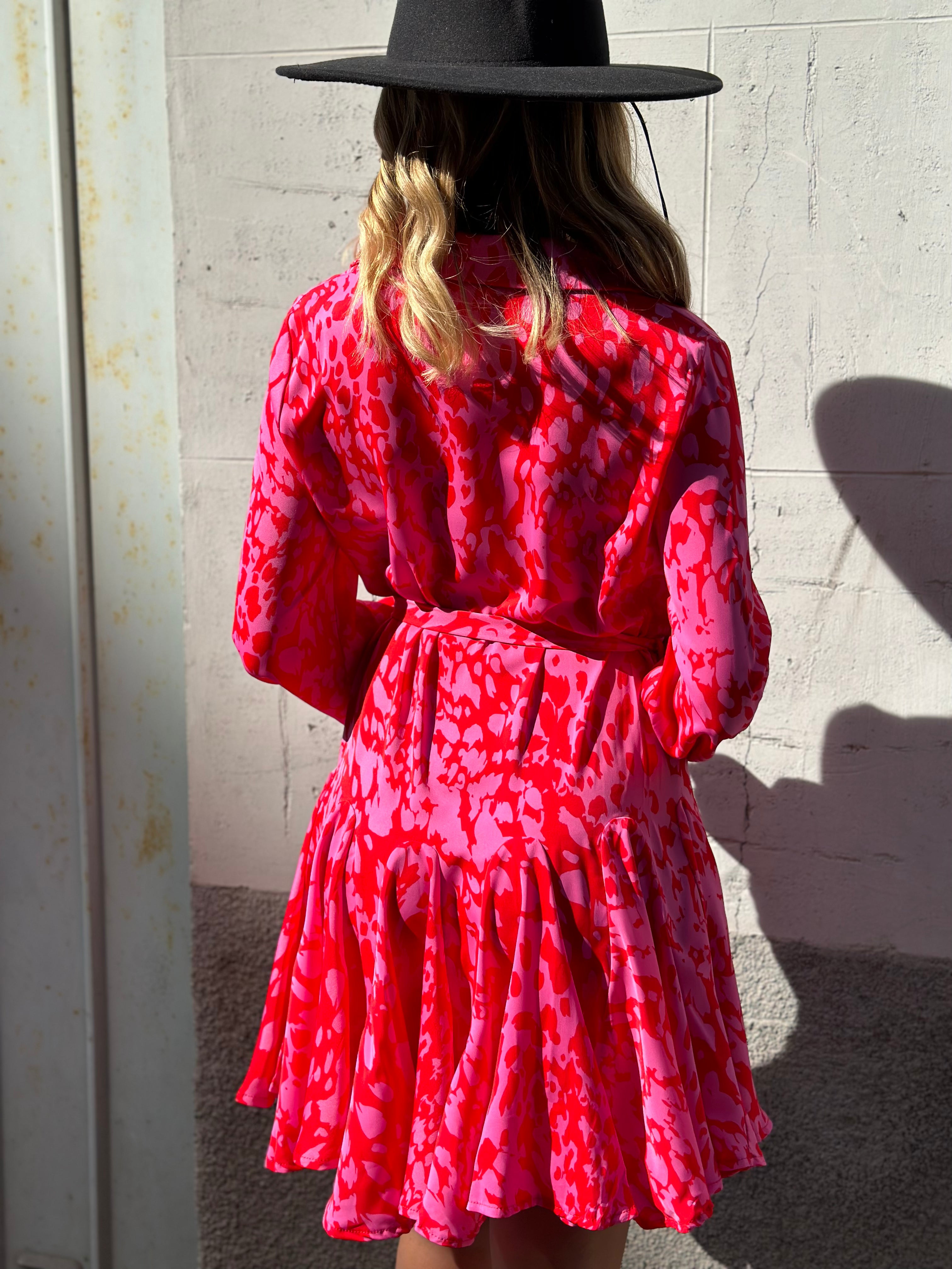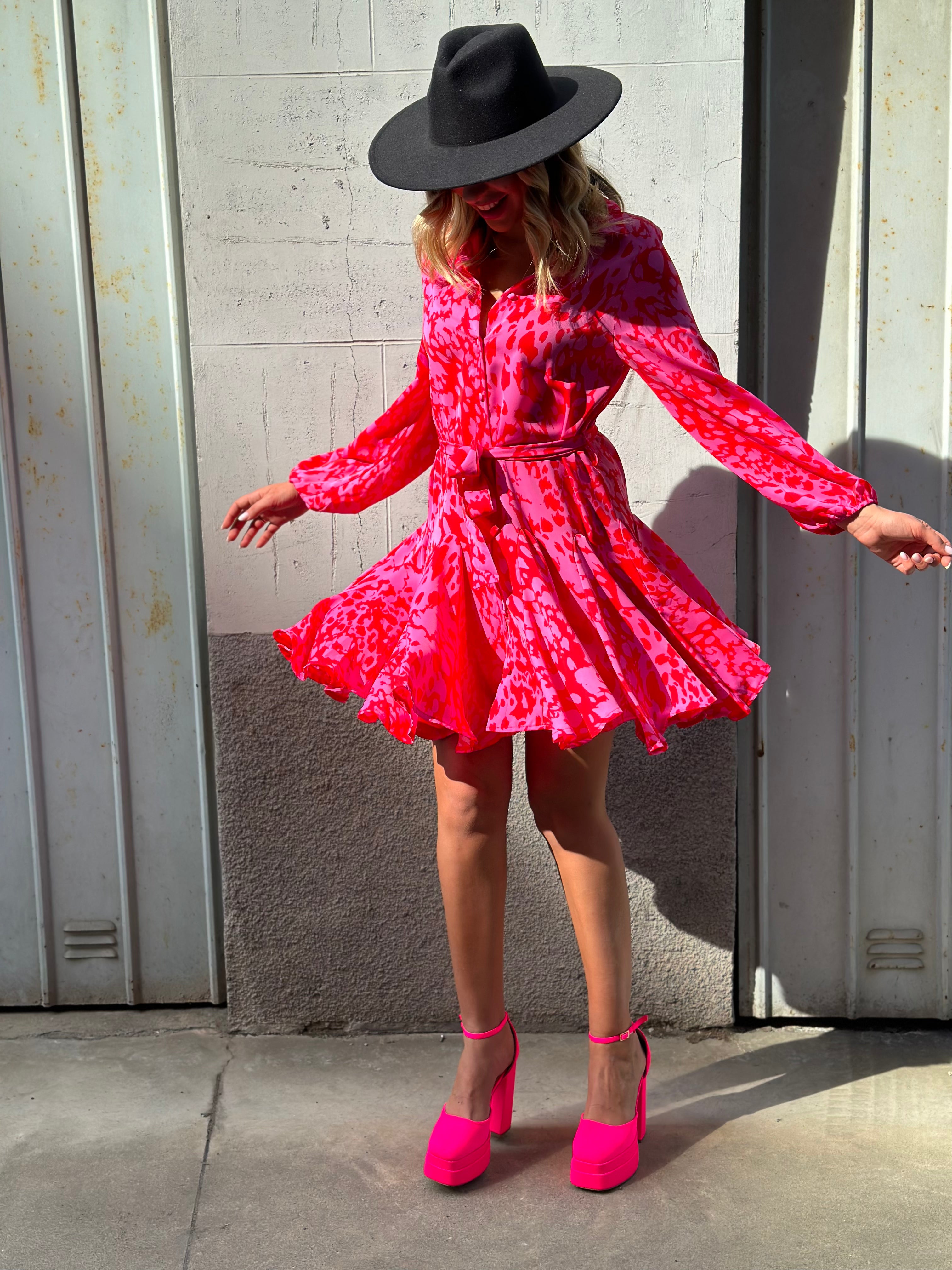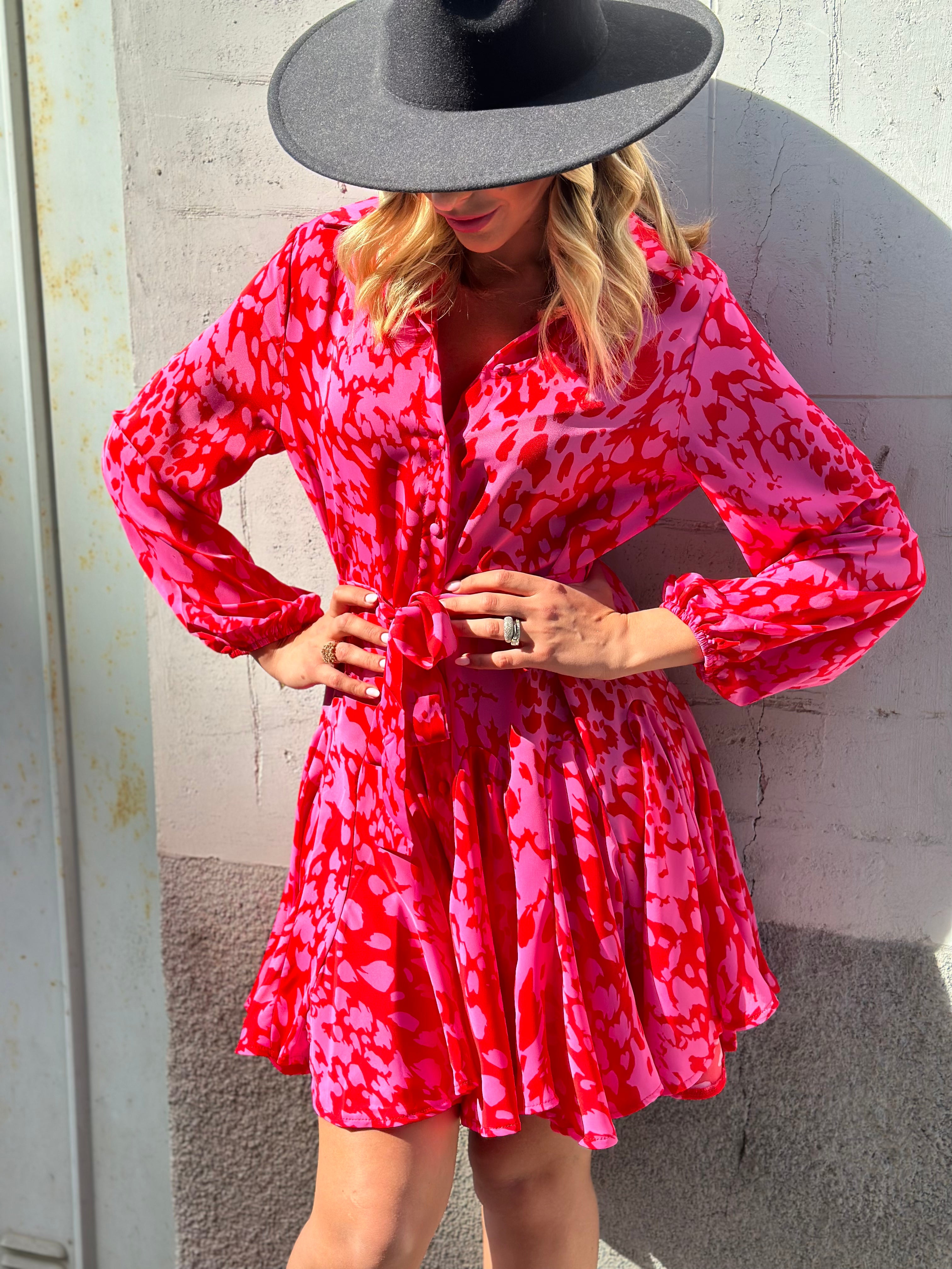Abito con bottoncini e gonna ruota, maniche con elastico e cinturino compreso