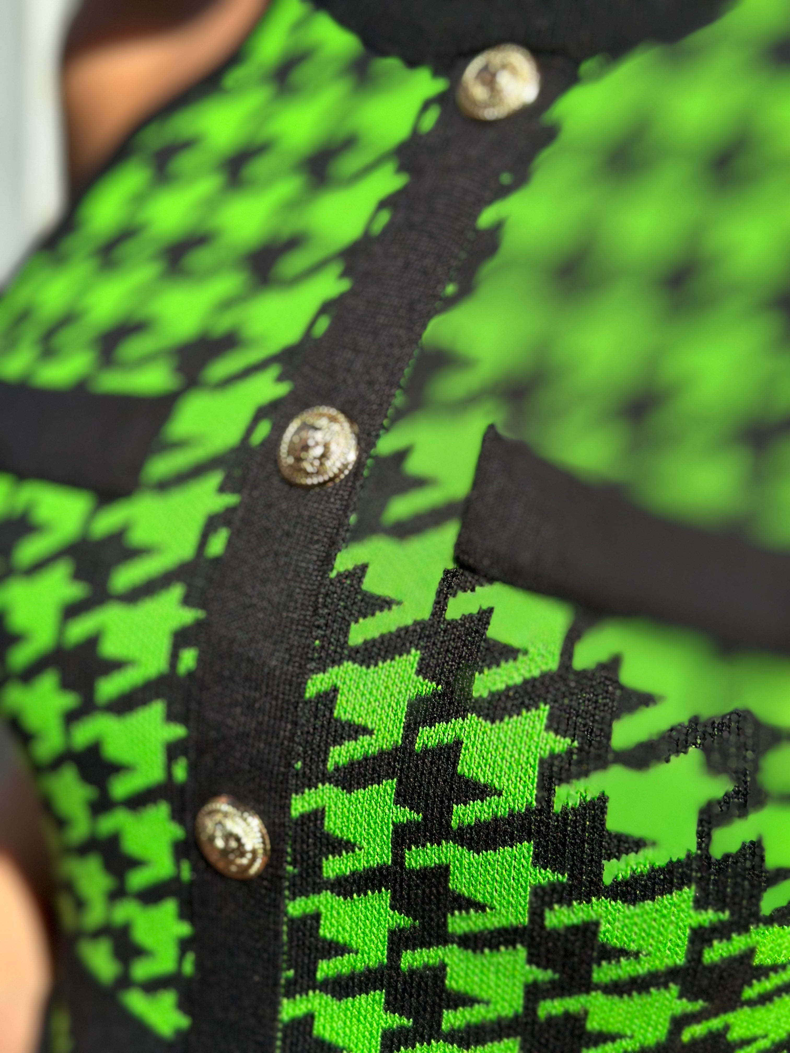 Abito smanicato in maglia con bottoni oro svasato a pieghe