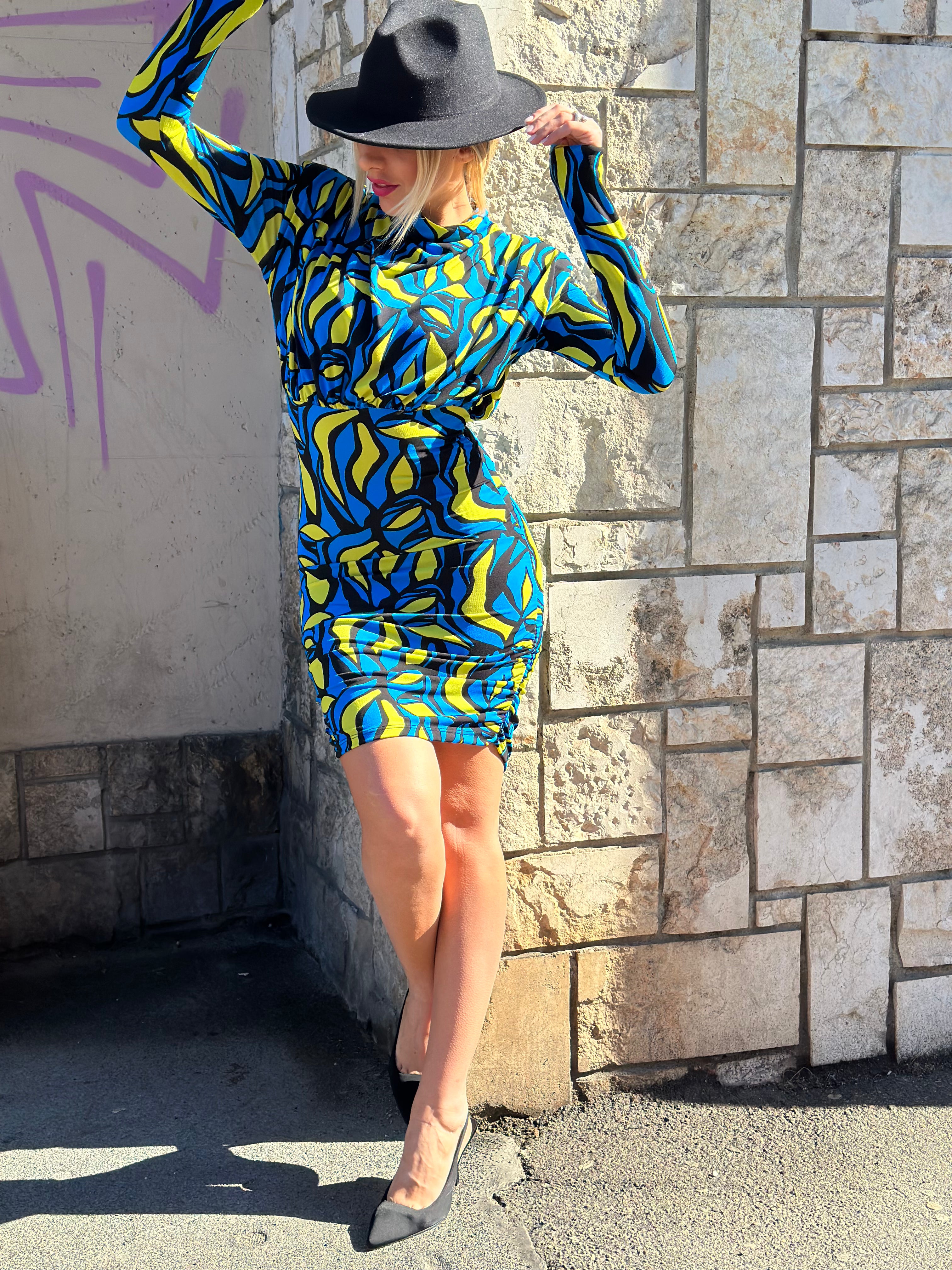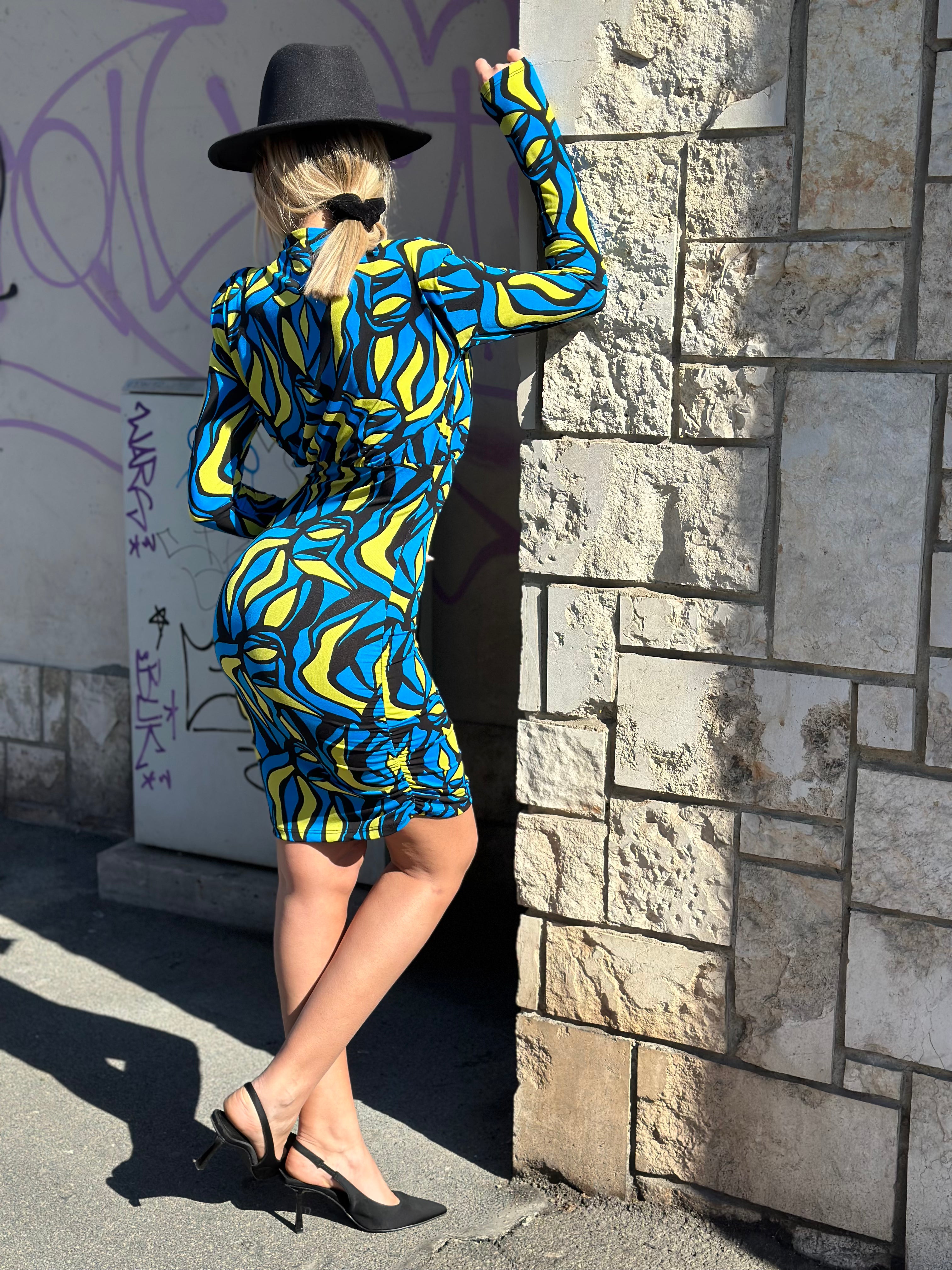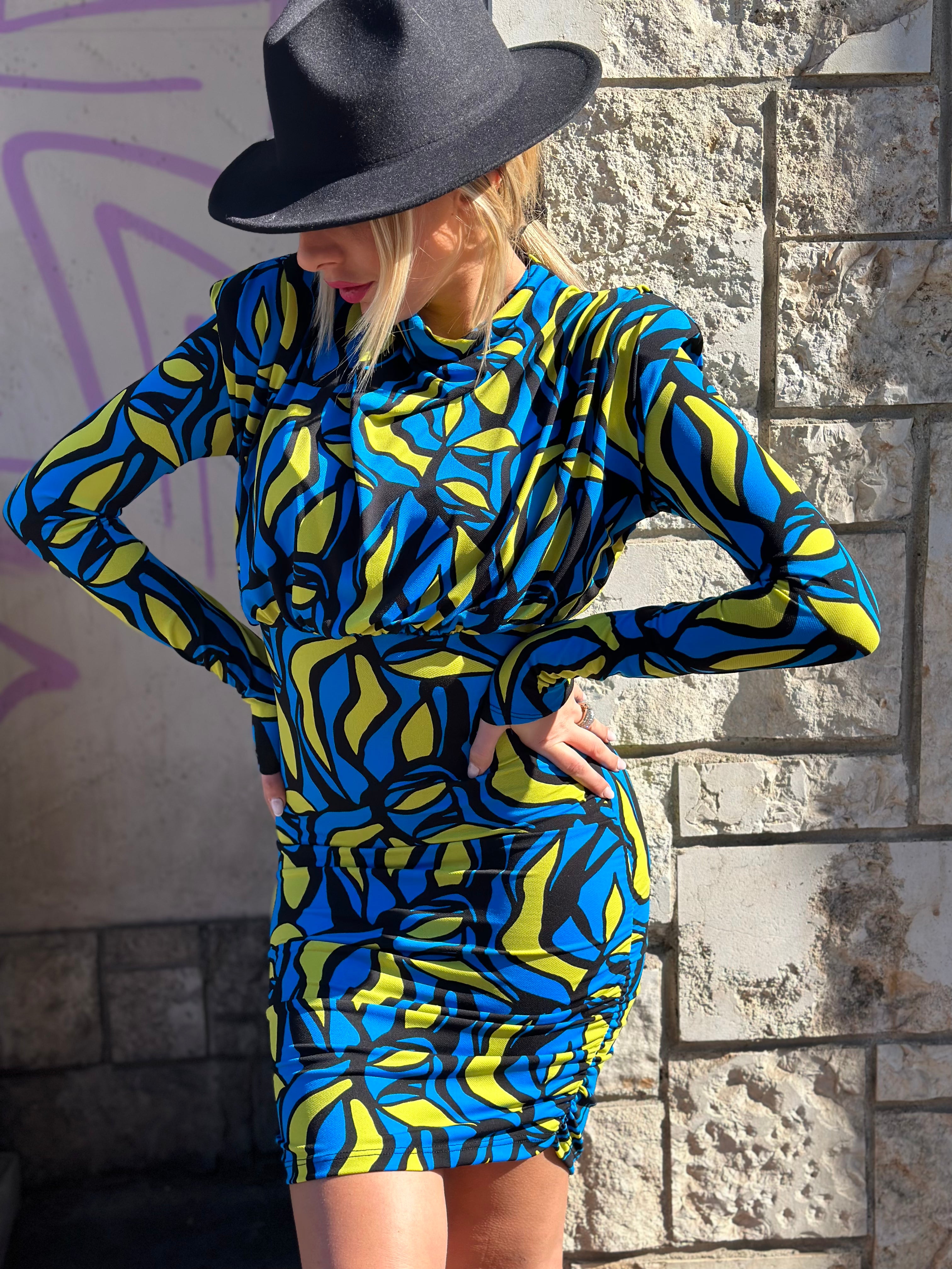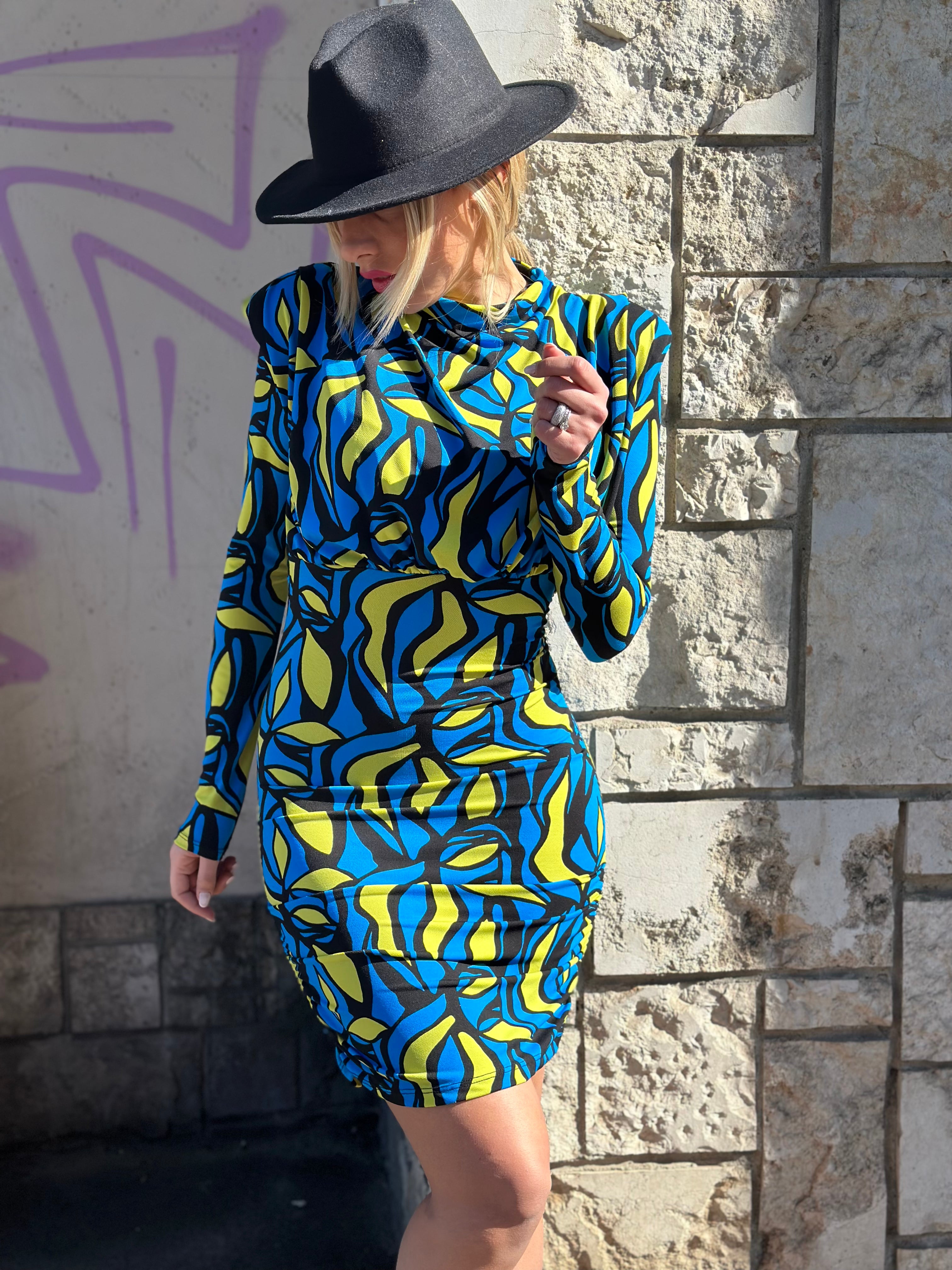 Abito corto con spalline drappeggiato nei fianchi, collo morbido, elast