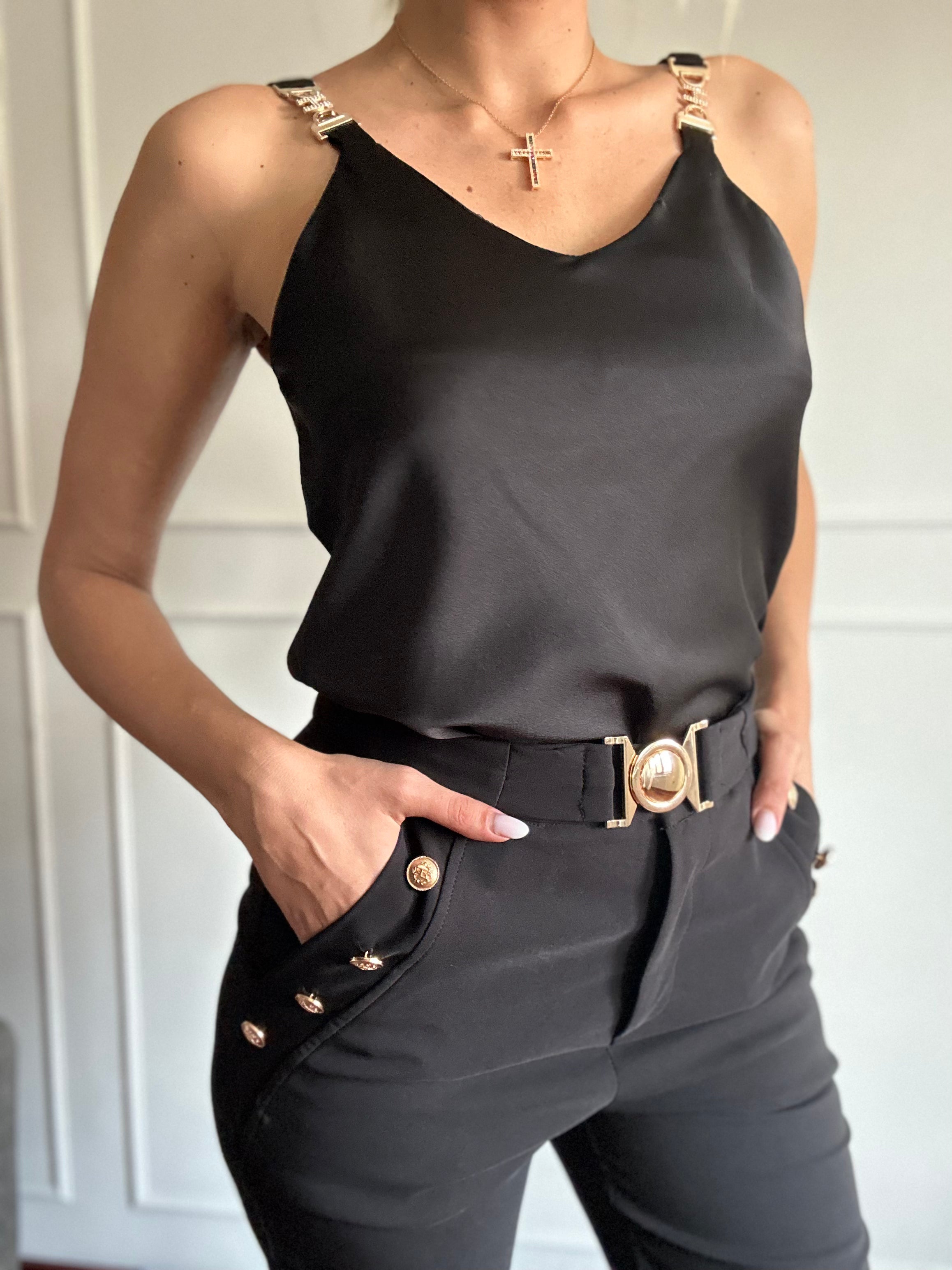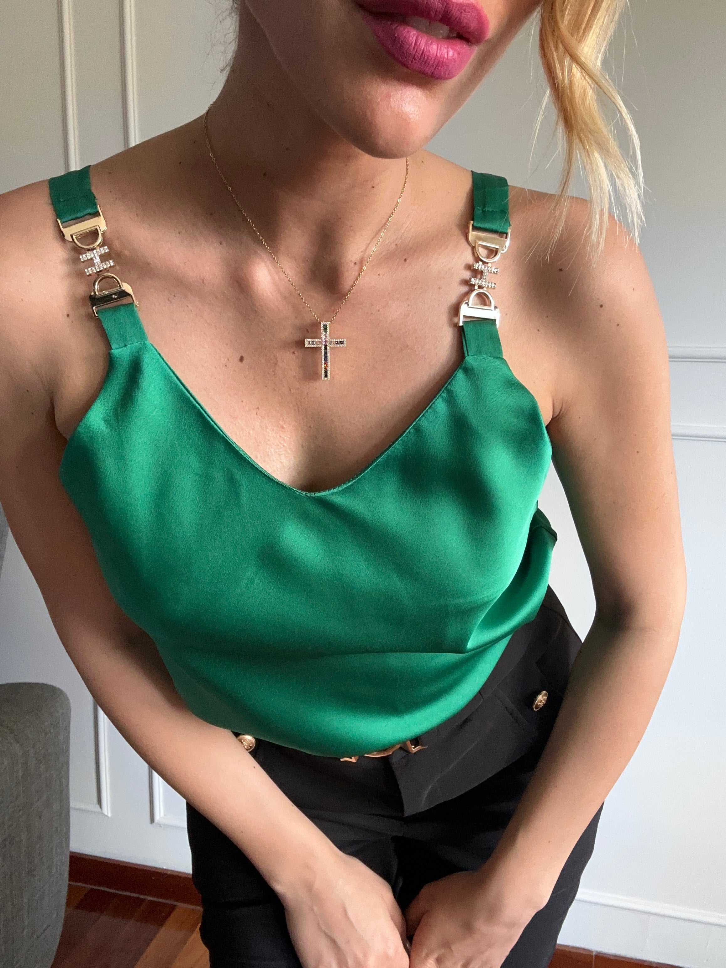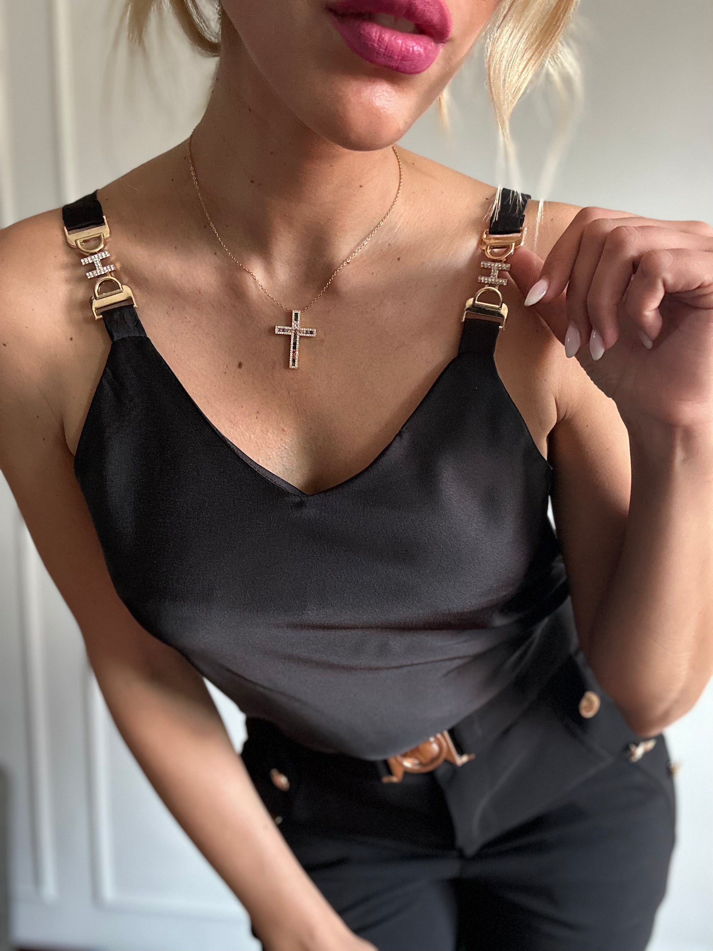 Canotta in licra , con applicazione gioiello nella bretella , vestibilita morbida