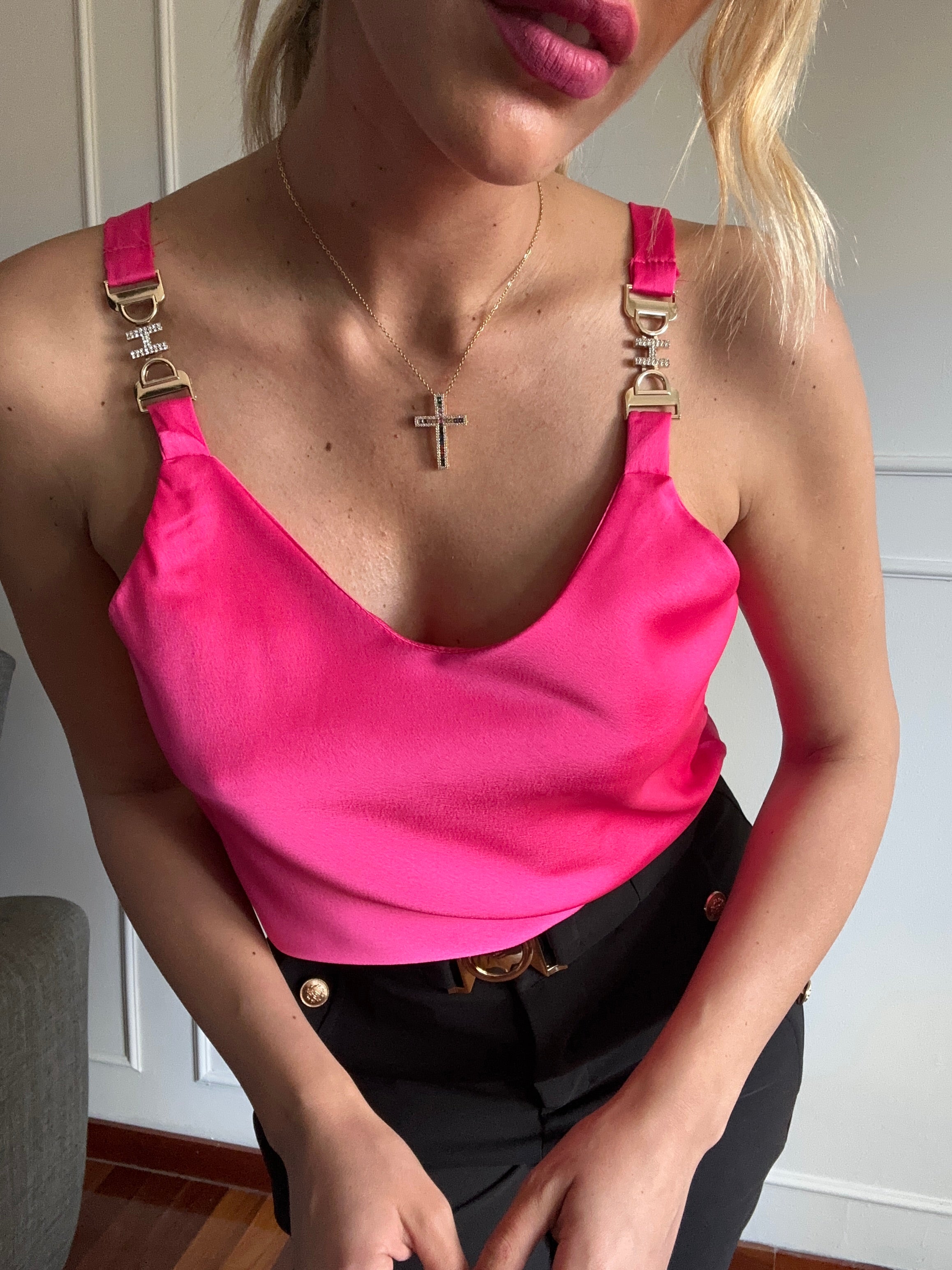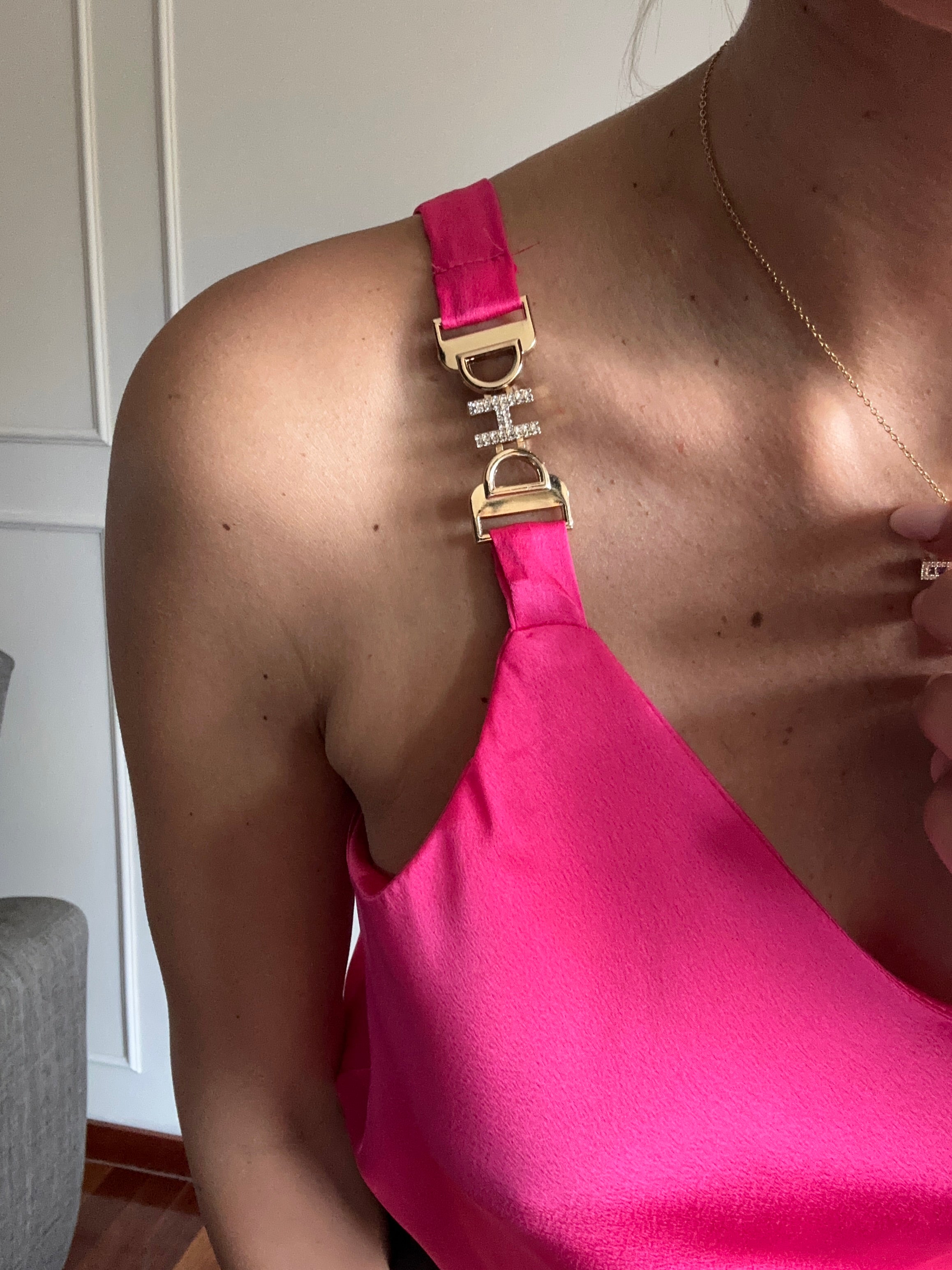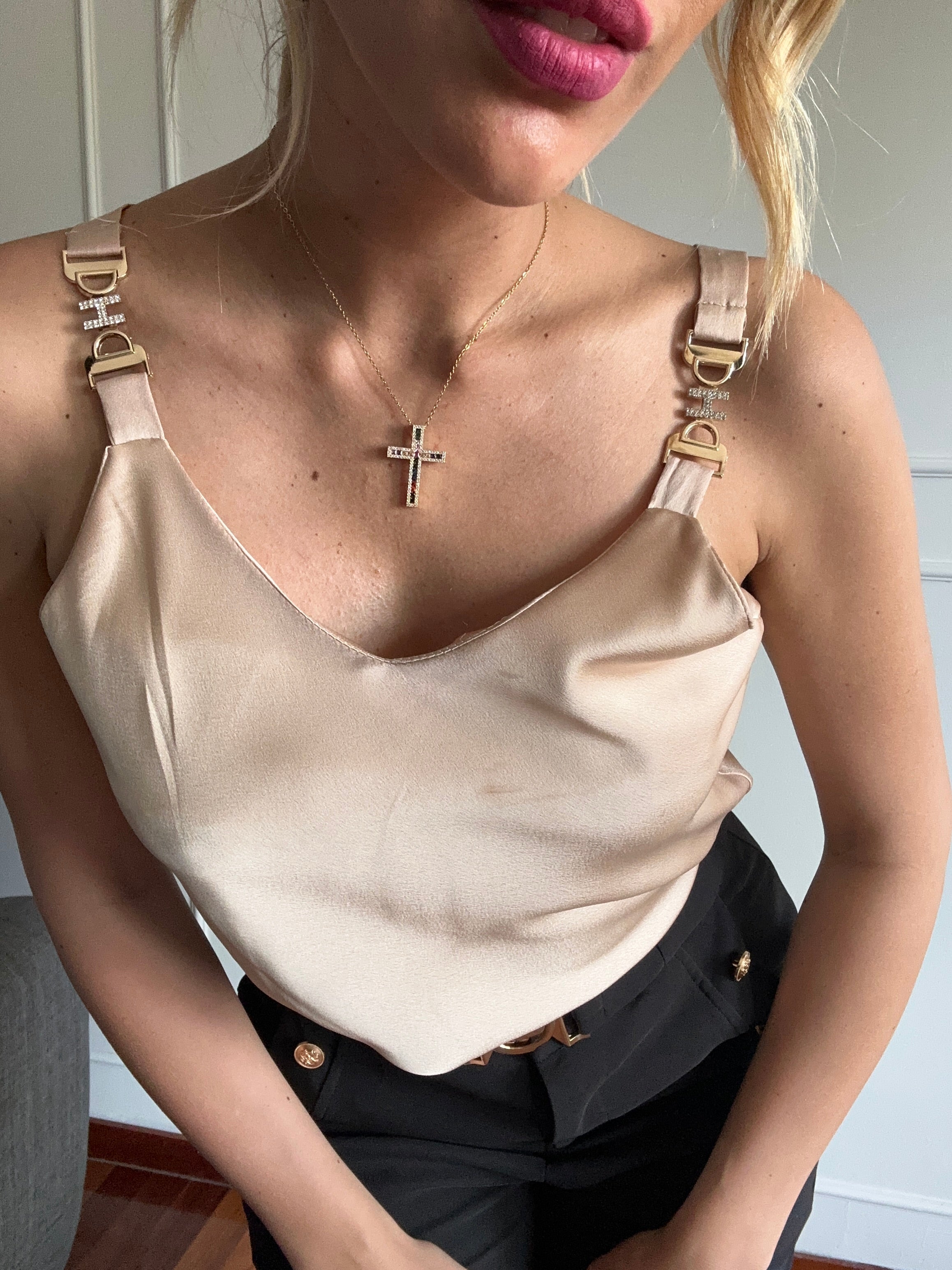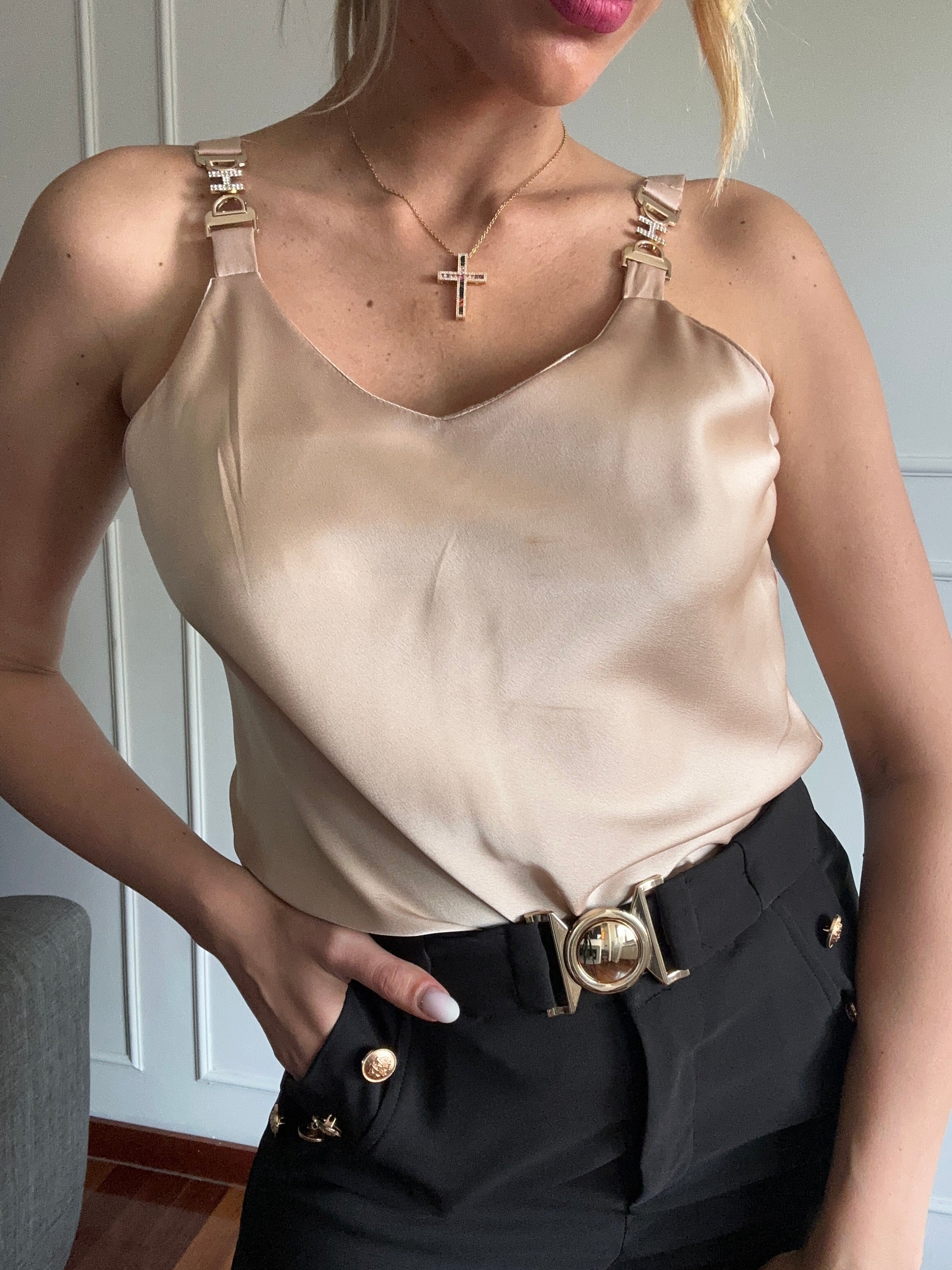 Canotta in licra , con applicazione gioiello nella bretella , vestibilita morbida