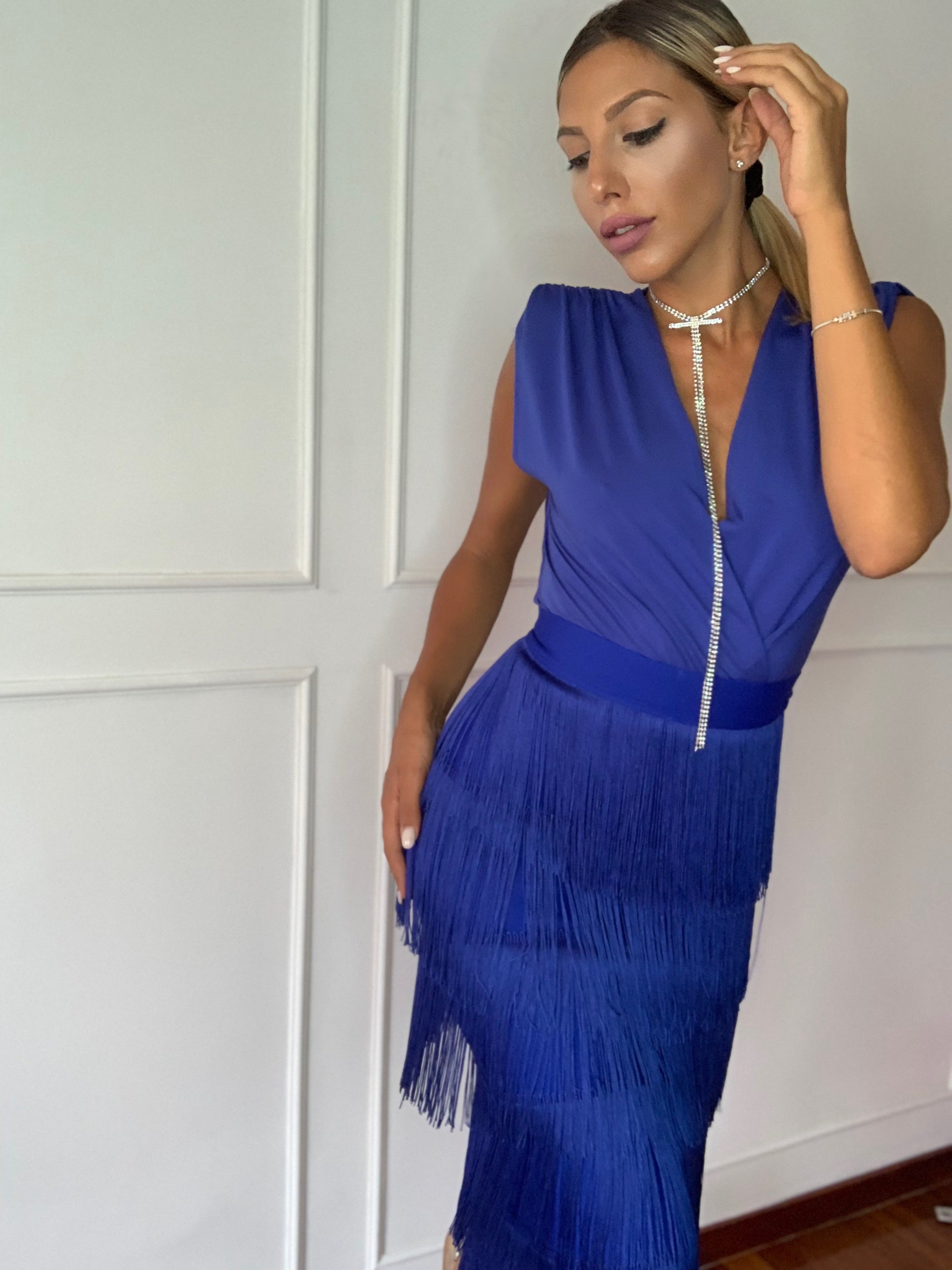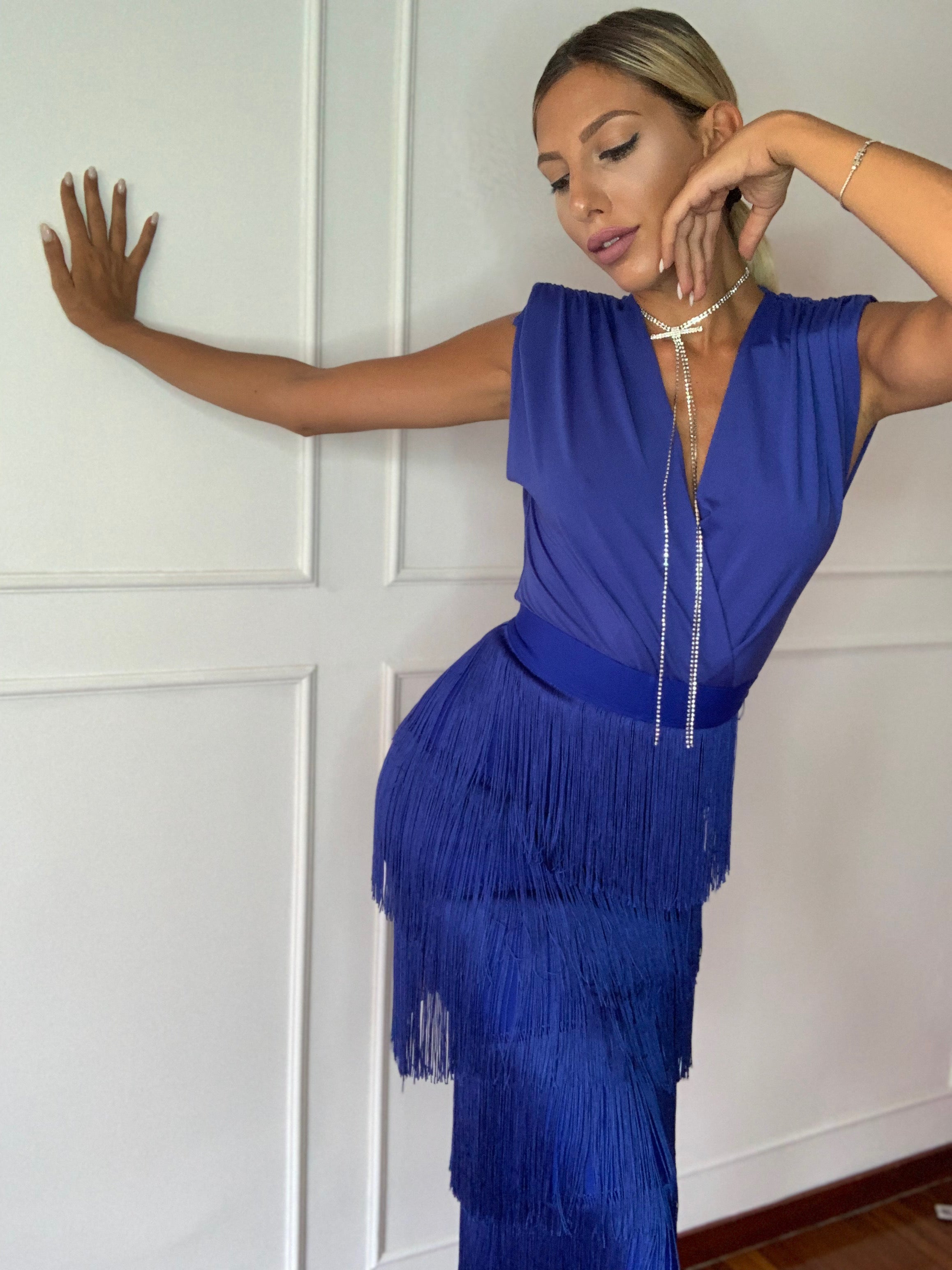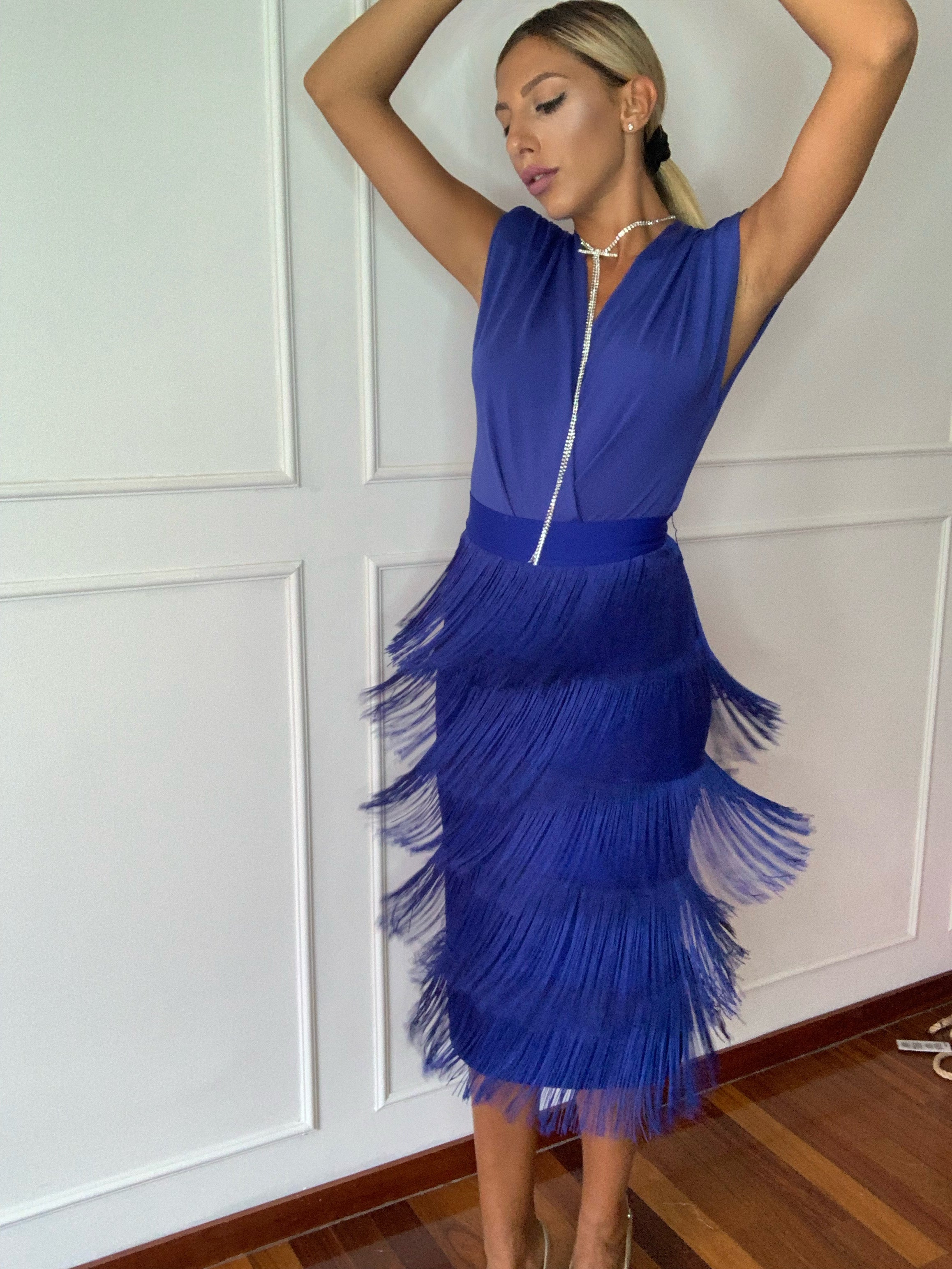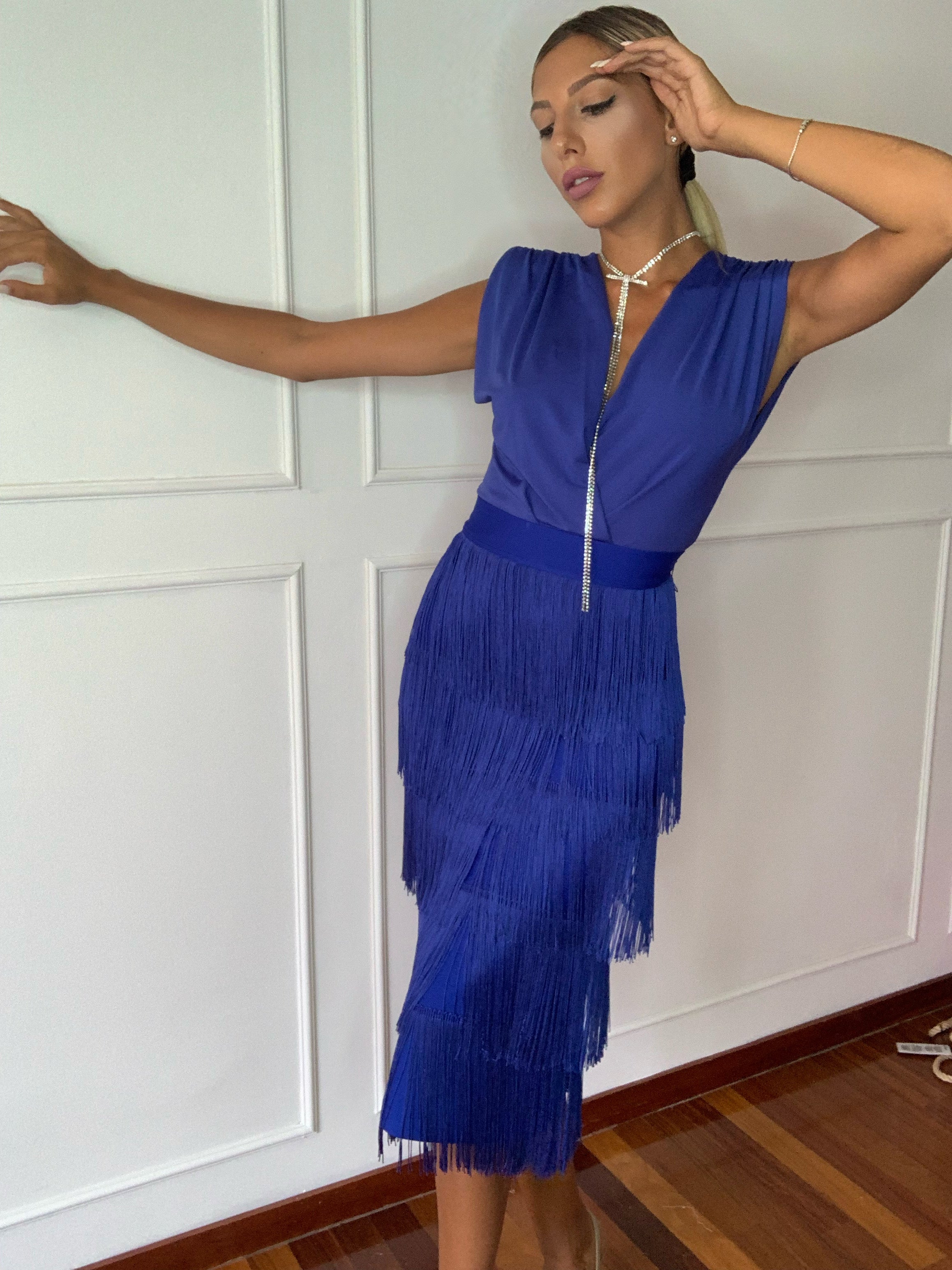 Longuette super stretch, con cerniera dietro, e balze di frange .