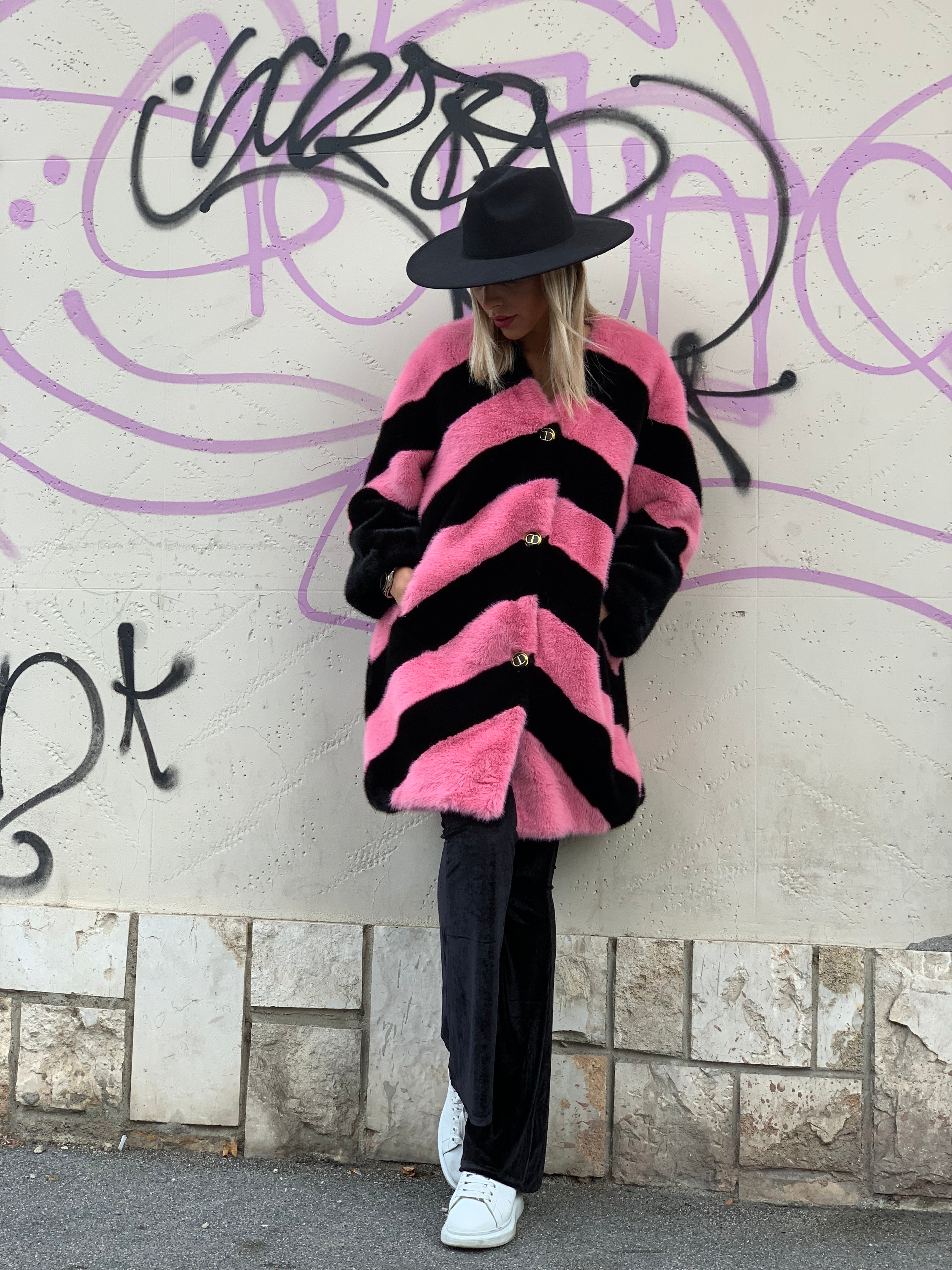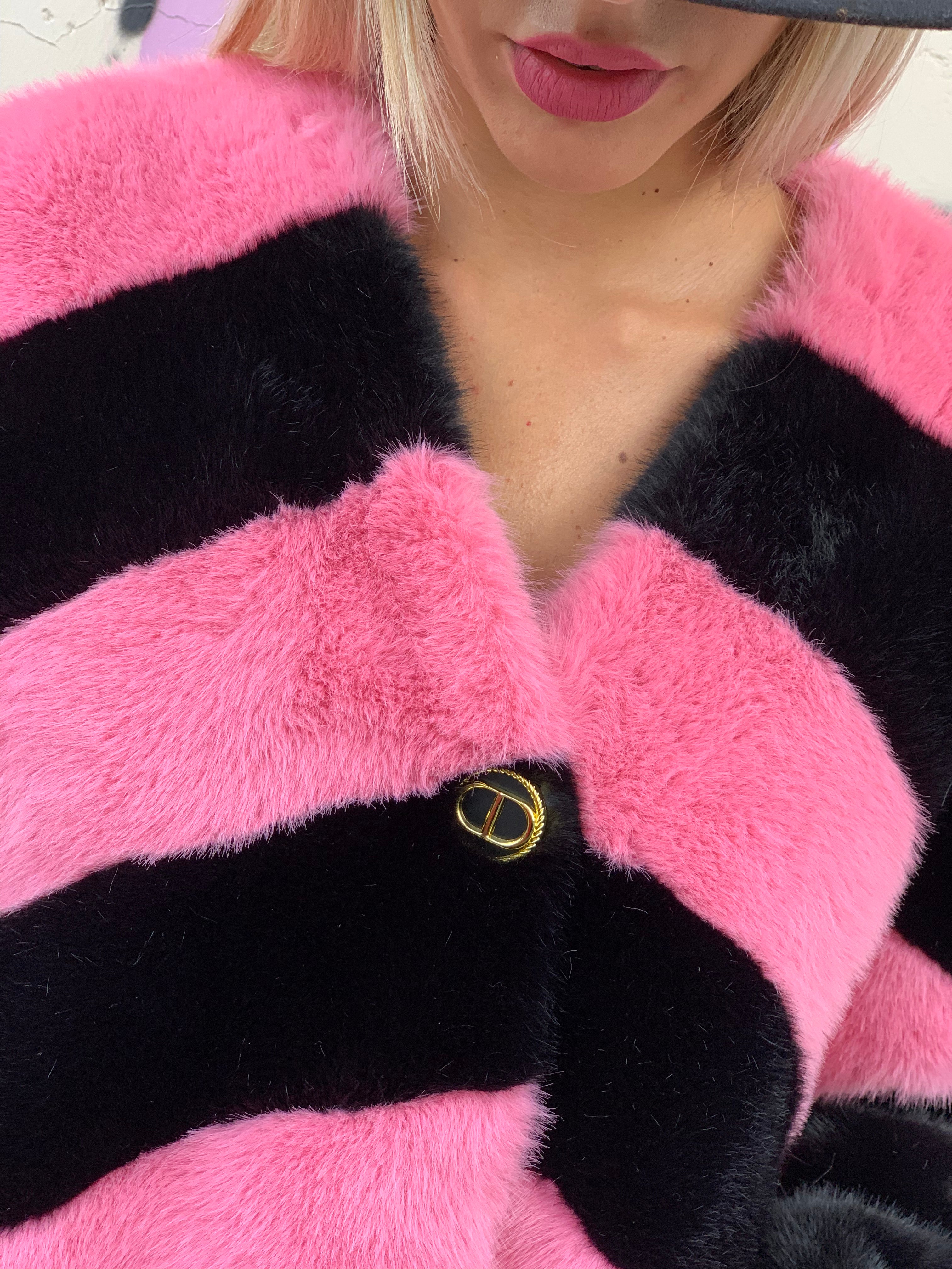 Ecopelliccia super morbida senza collo, con bottoni oro