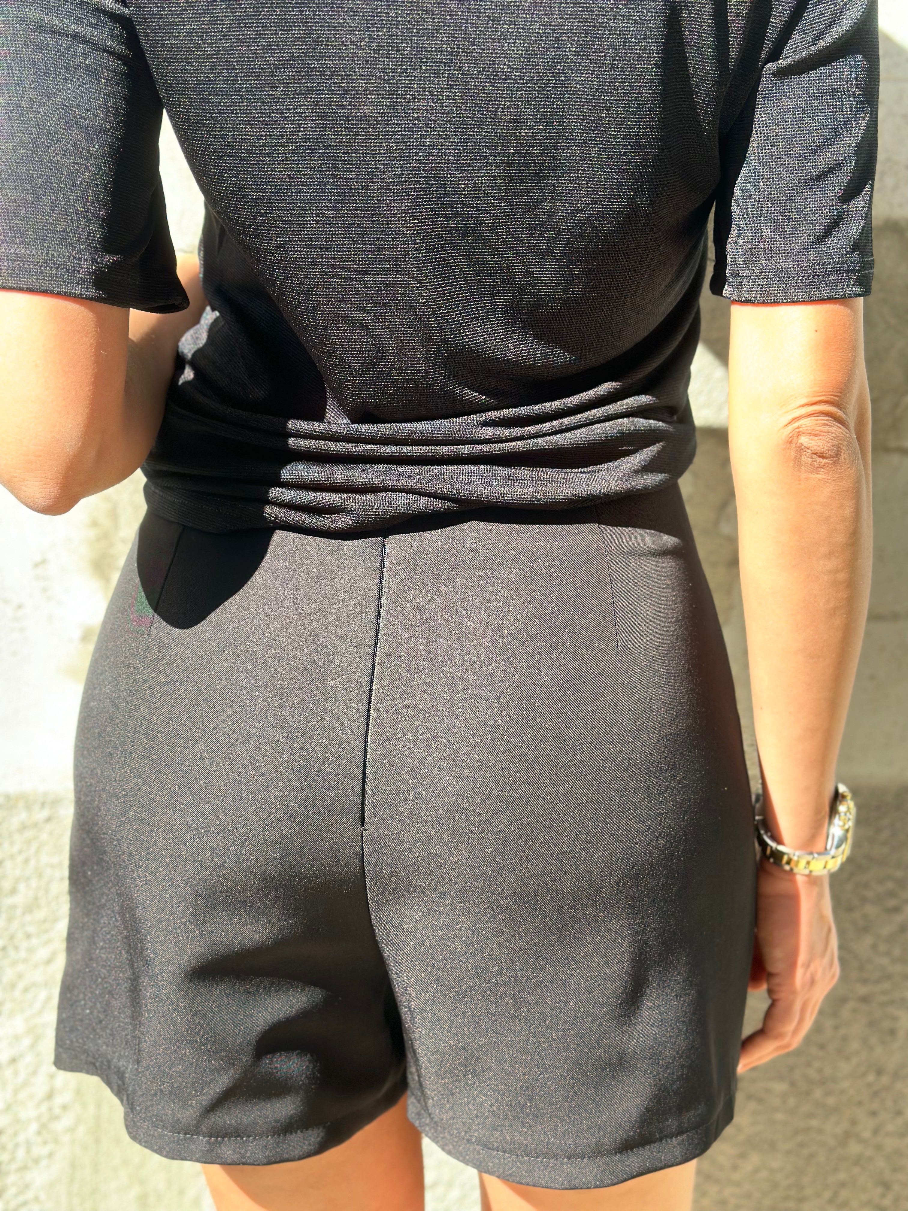 Short corro con bottoni oro inserti oro ,tasche laterali e zip dietro ,lunghezza 38 cm