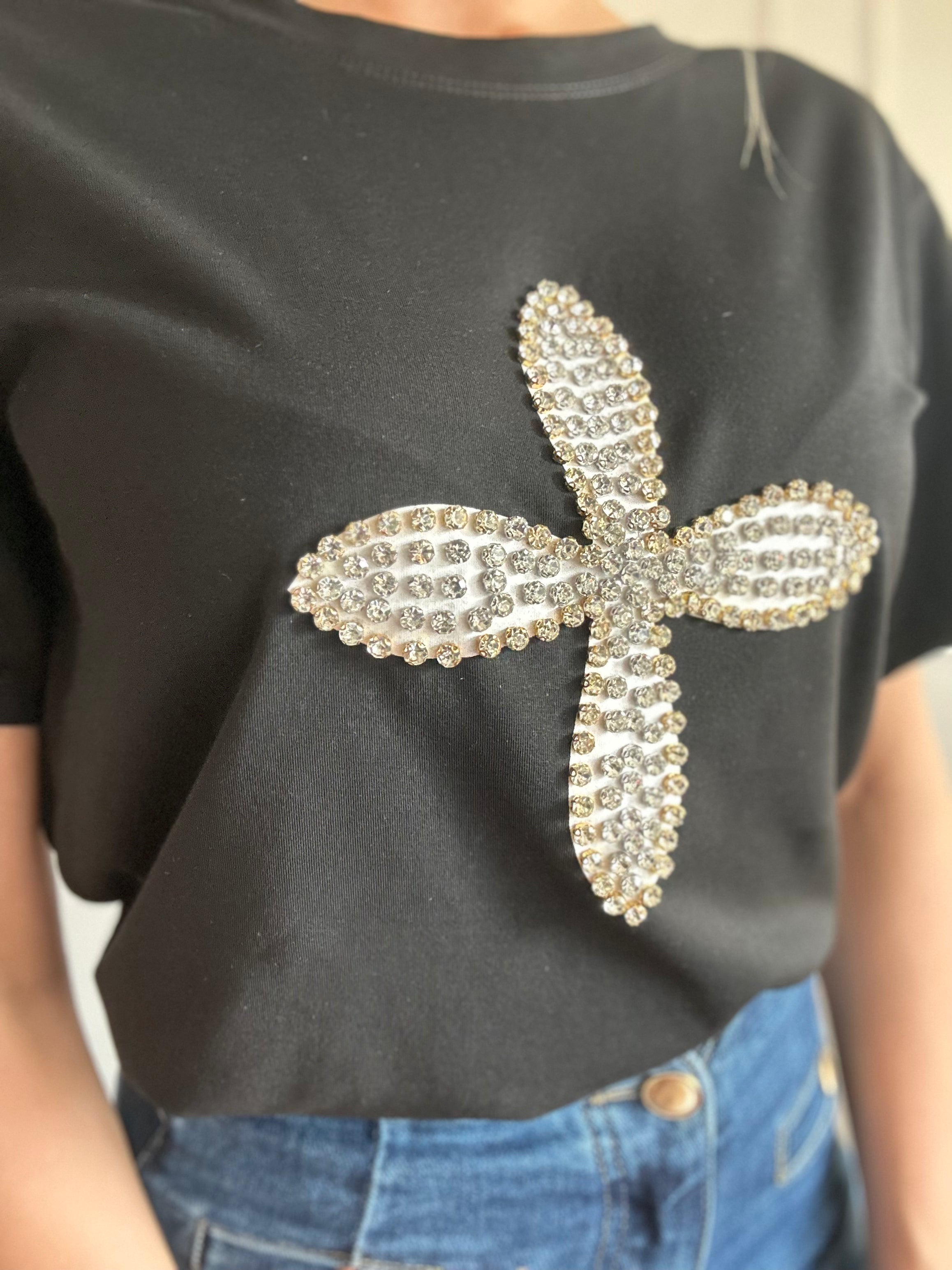 Tshirt in cotone vestibilita comoda, elasticizzata con applicazione swarosky davanti